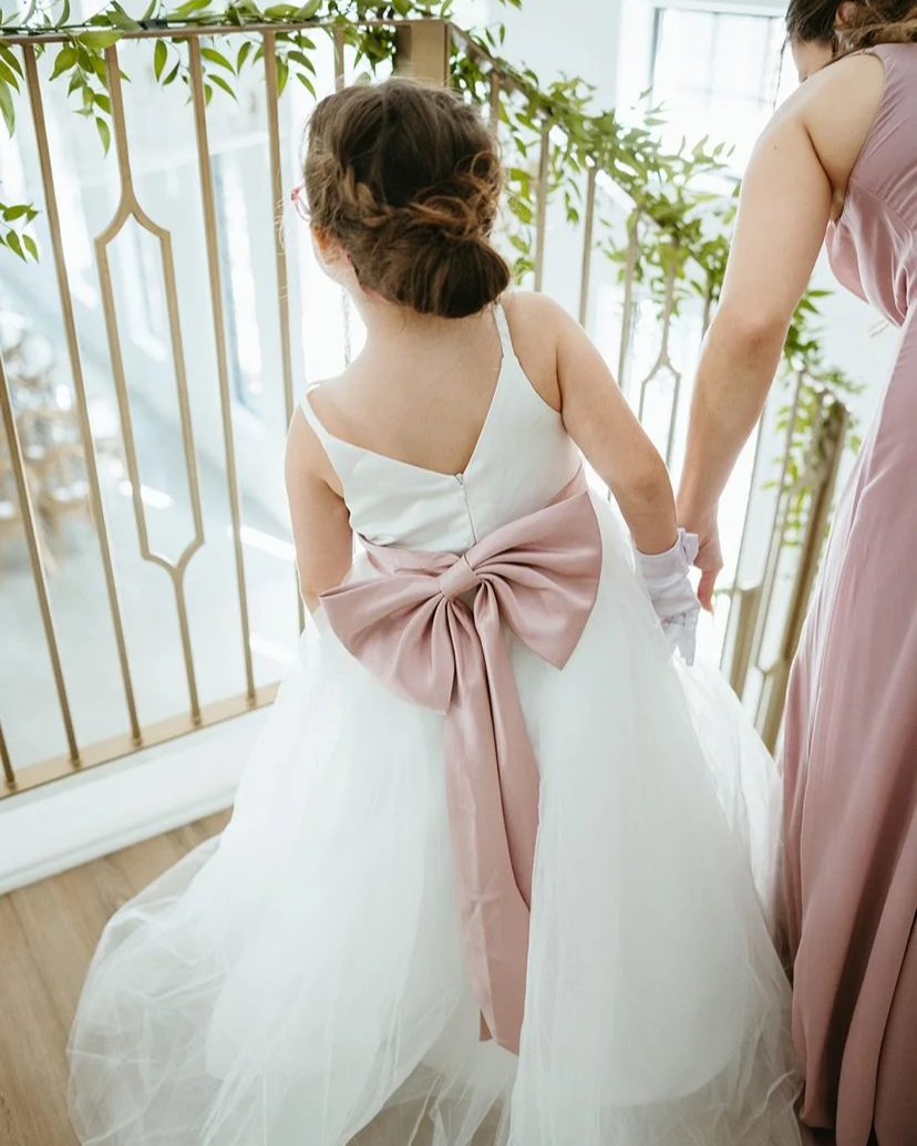 flower girl wearing pink bow